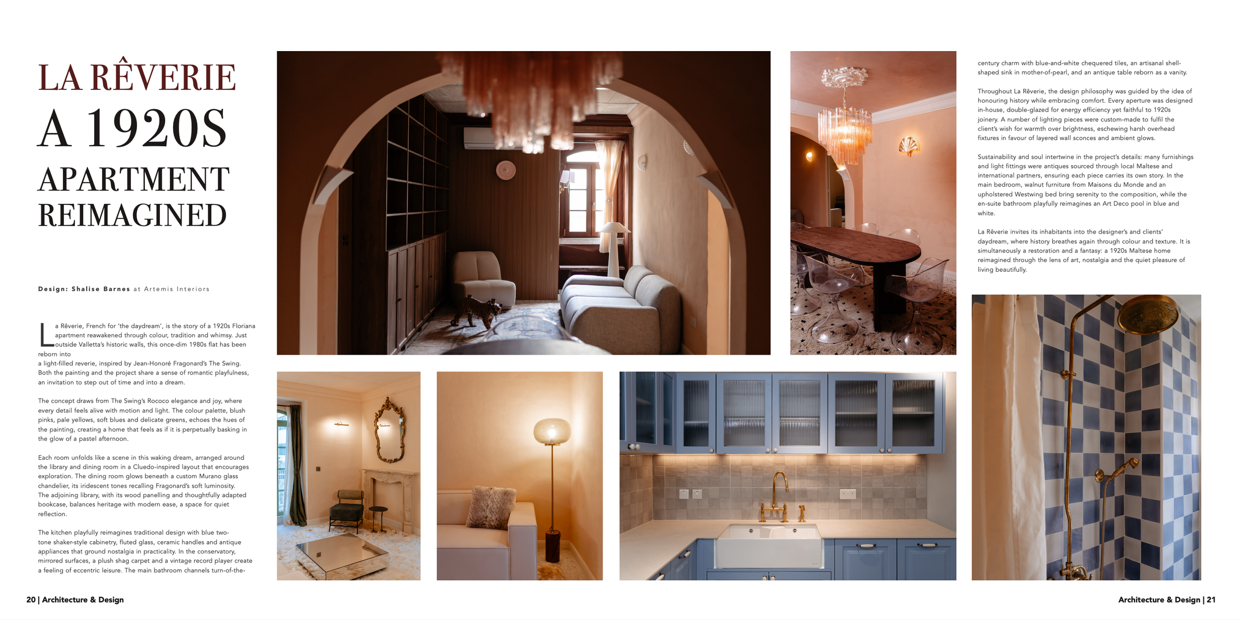La Rêverie — French for “the daydream” — is the story of a 1920s Floriana apartment reawakened through color, craftsmanship, and whimsy. Just outside Valletta’s historic walls, this once-dim 1980s flat has been reborn into a light-filled reverie, inspired by Jean-Honoré Fragonard’s The Swing. Both the painting and the project share a sense of romantic playfulness—an invitation to step out of time and into a dream.